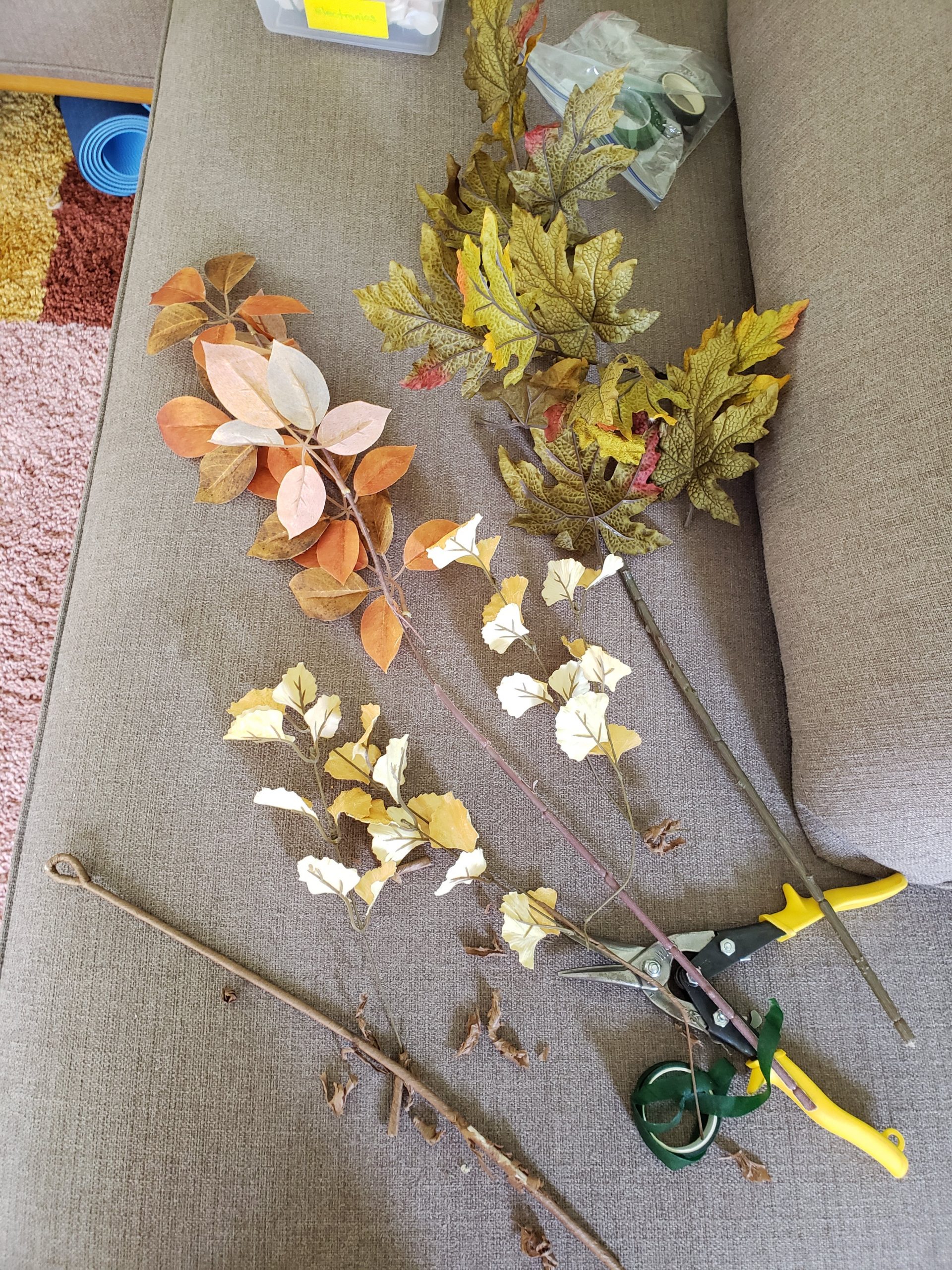I ended up with a good amount of flowers leftover after adding to the arrangment, which I was hoping for because I wanted to also arrangement, some decor to go on our door. I’ve been wanting something more generically “fall” and less halloweeny to hang in September/November.