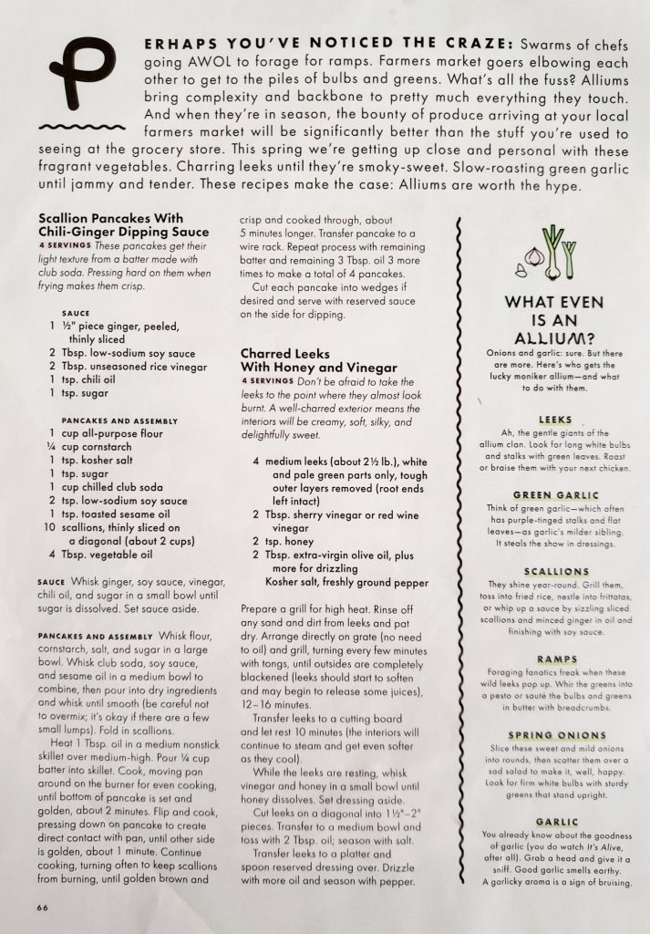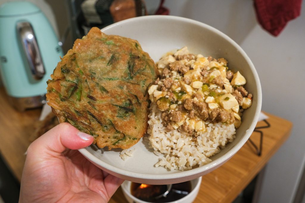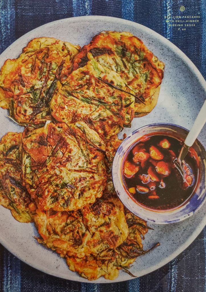 Looking at the original photo from the magazine, I think I could’ve cut my diagonal onions a bit thinner, and maybe that would’ve helped me get flatter pancakes? The non-diagonal onions were for the tofu ~