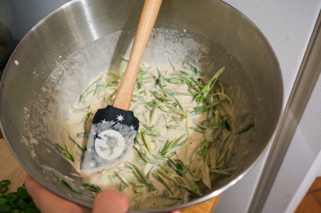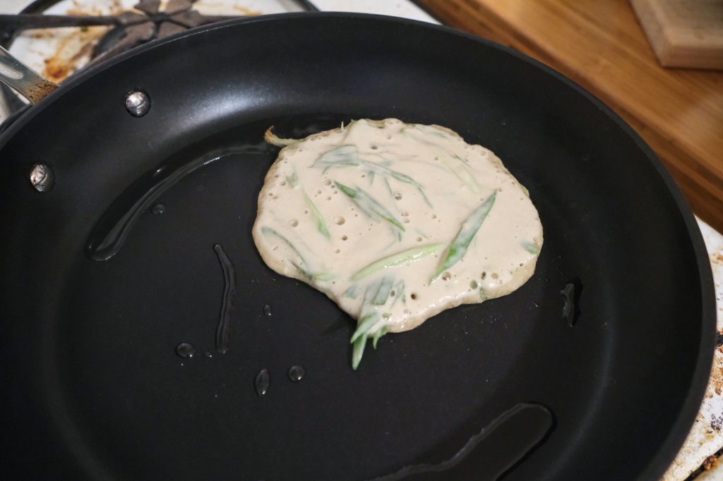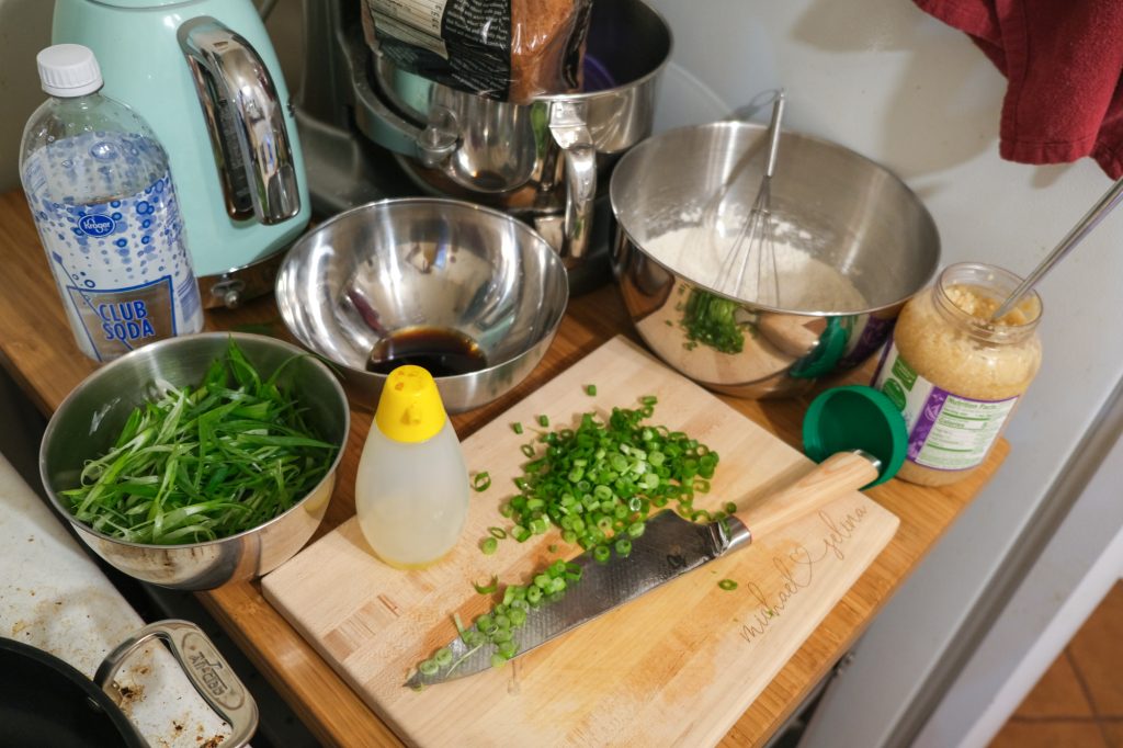This is the first time I’ve made a scallion pancake recipe that uses a batter rather than a dough. Definitely a bit quicker than the dough versions! But requires an ingredient that I wouldn’t normally have on hand unless I got it specifically for a recipe – club soda.