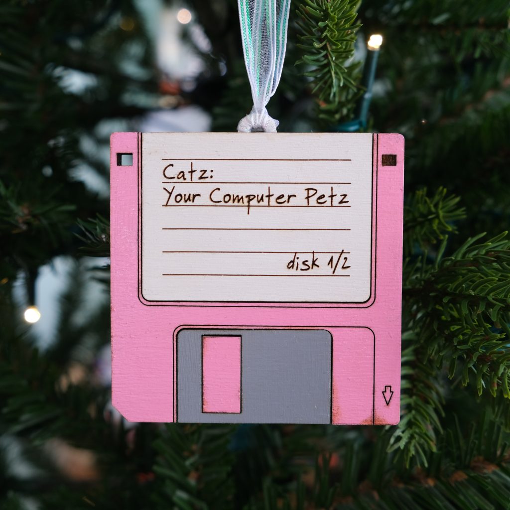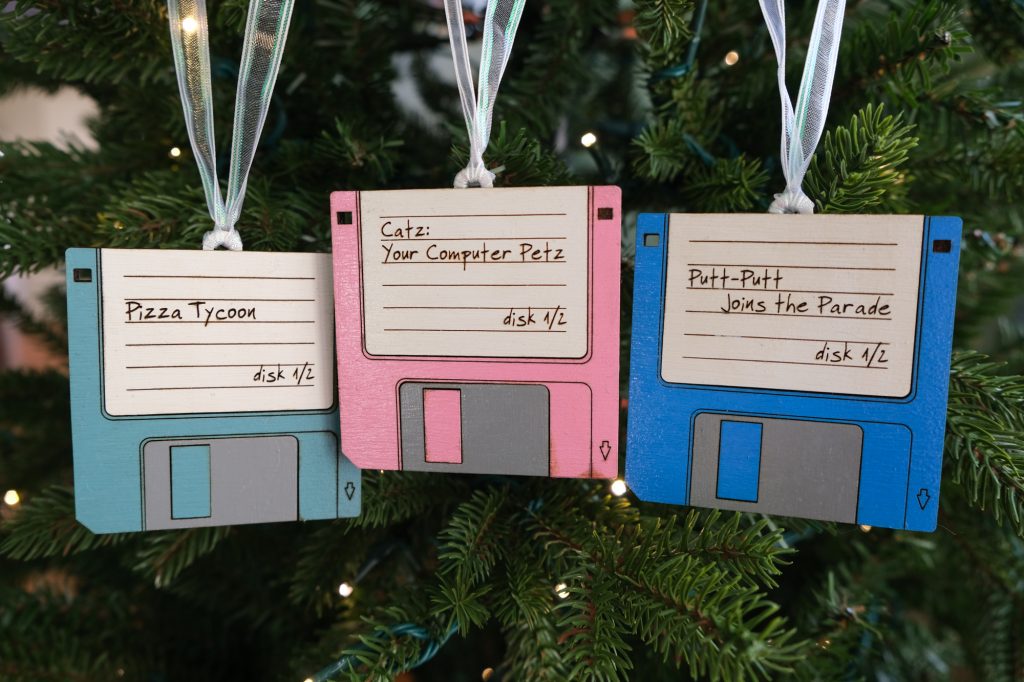 These hand-painted ornaments were the first time I enjoyed the process of making something for a long while. I especially loved the slight char marks the laser made on each disk. It made them feel properly weathered and used, like a good floppy disk should be haha.