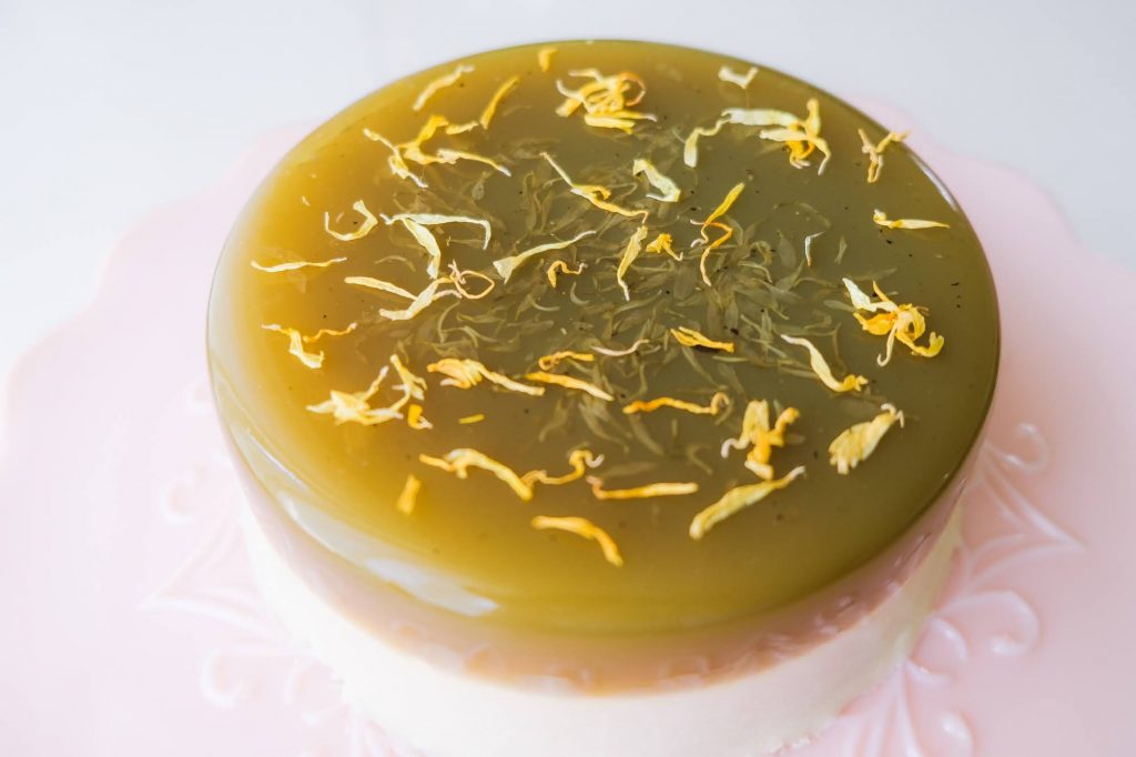The top layer is chrysanthemum tea jelly (tea from Chado Tea), bottom is almond jelly, and it’s topped with dried marigold petals from Old Town Spice Shop. ♡ I used wayyyyyyy too much agar agar in this recipe so the cake ended up a little too tough hahah. The instructions that came with the agar recommended 1 tbsp per cup of liquid which I since learned is not a good ratio. It still tasted delicious though!