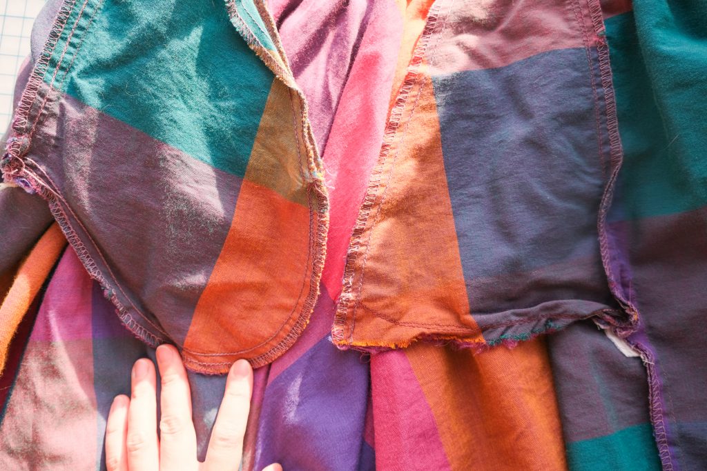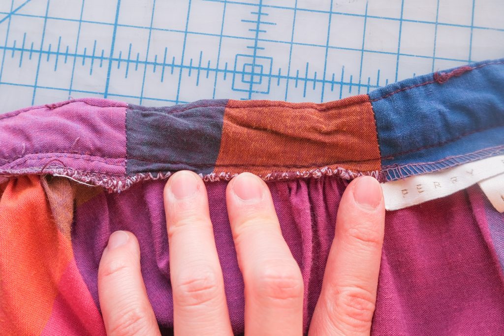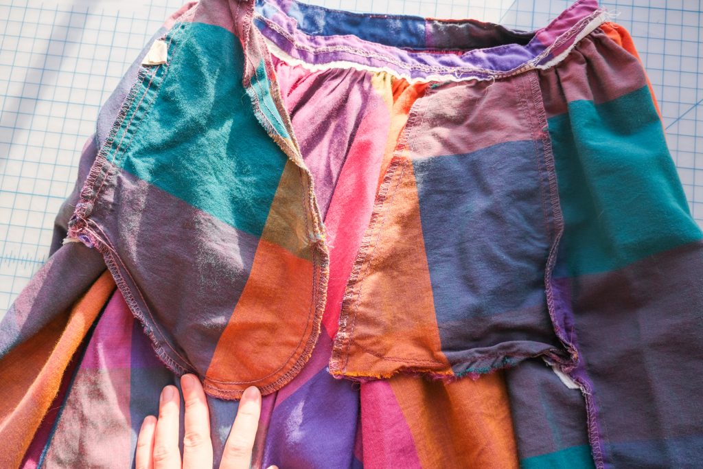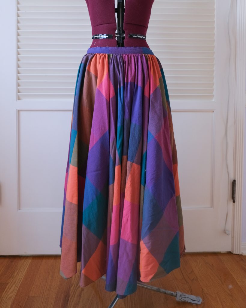 Something I found really charming about the original skirt was that it had already been altered by a previous owner! They cut the bottom off of one of the pockets, and used that fabric to add some room to the waistband. 🙂