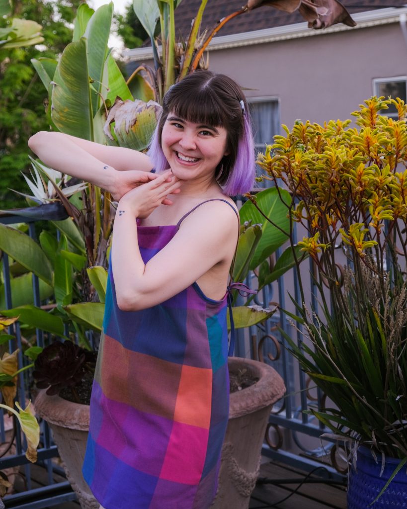 I made a new dress! ~ I used the Wattlebird Dress pattern by Common Stitch and half of the fabric from a skirt I got off depop. ♡ I love how well it goes with my El Cholo’s Kid purse. 🌈💖 Star hair clips are by Neon Heartbreaker. 🌟