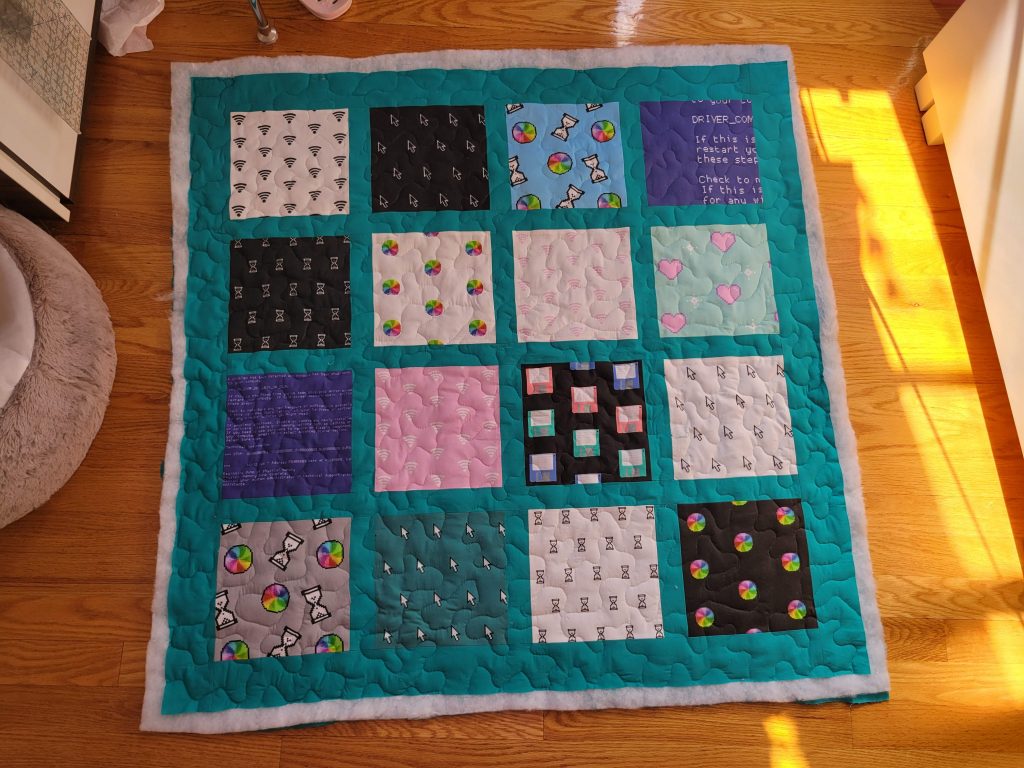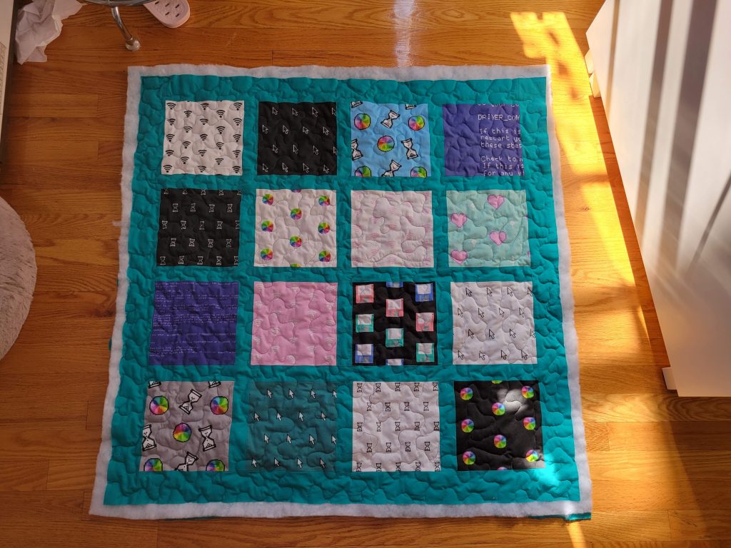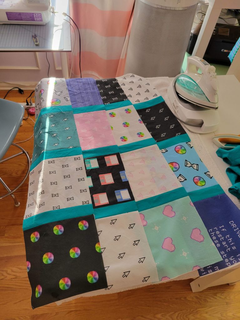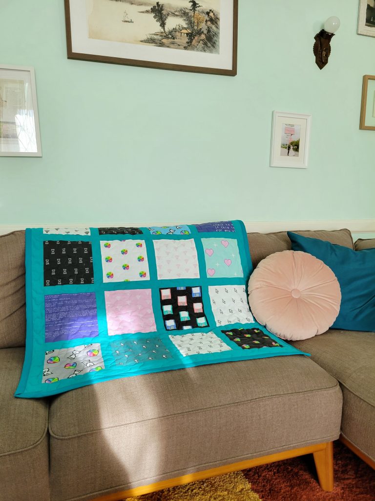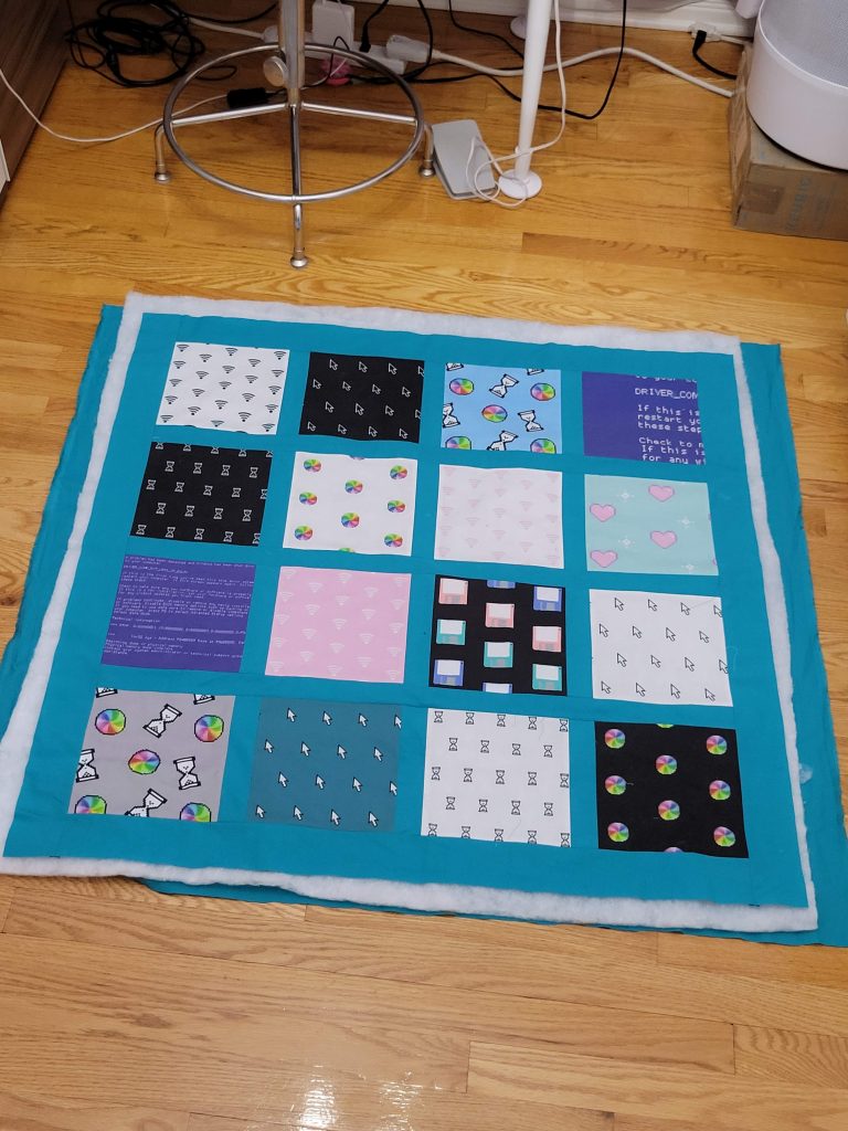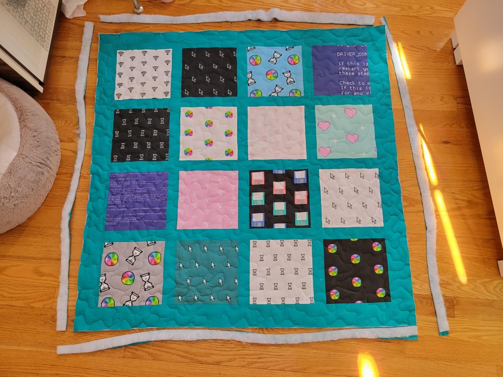 And then I was done! 🎉 This is my first ever quilt, and it was definitely a lot less annoying than I thought it’d be (I think that may be because my squares were so large though.. hahah).