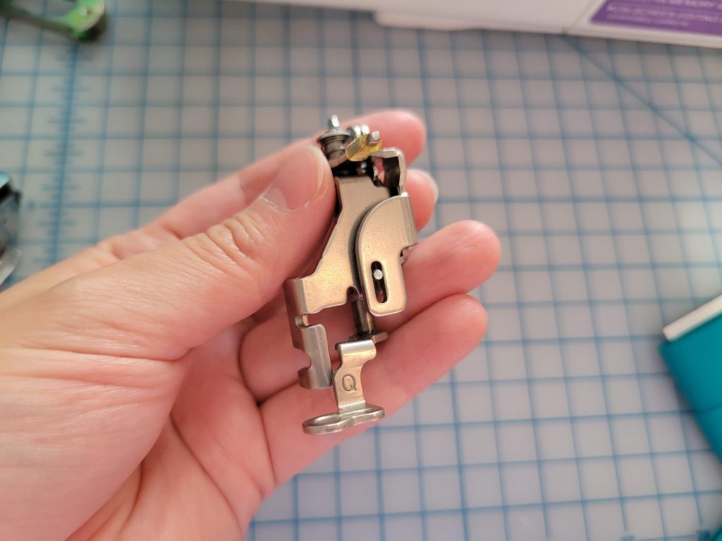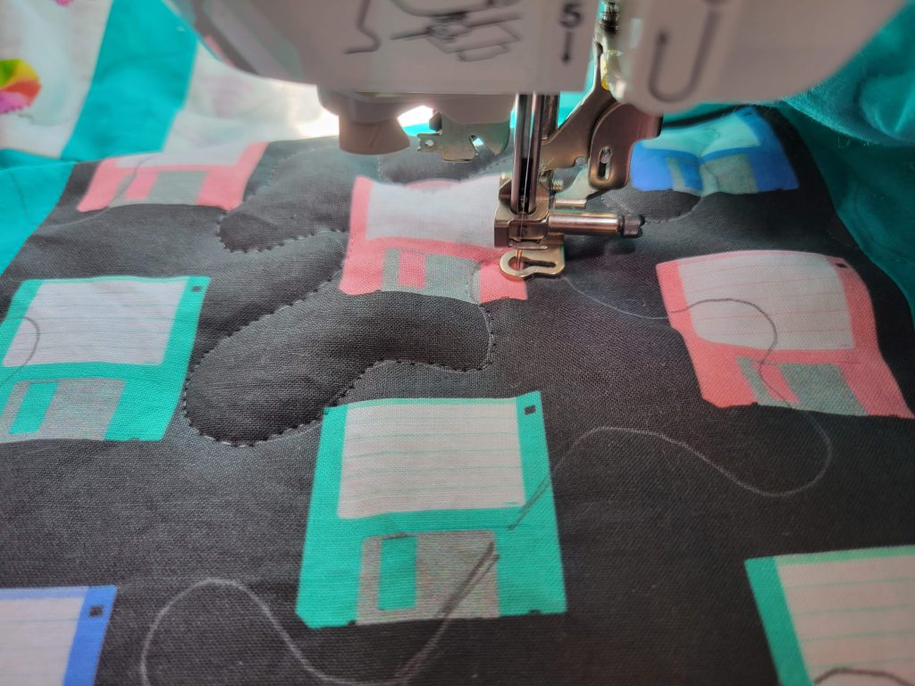 There might be a better foot for this, but I ended up using the Q Embroidery foot that came with my machine for the freehand sewing. The main thing you need to remember is to lower the feed dogs so that you can control the direction of the fabric by hand.