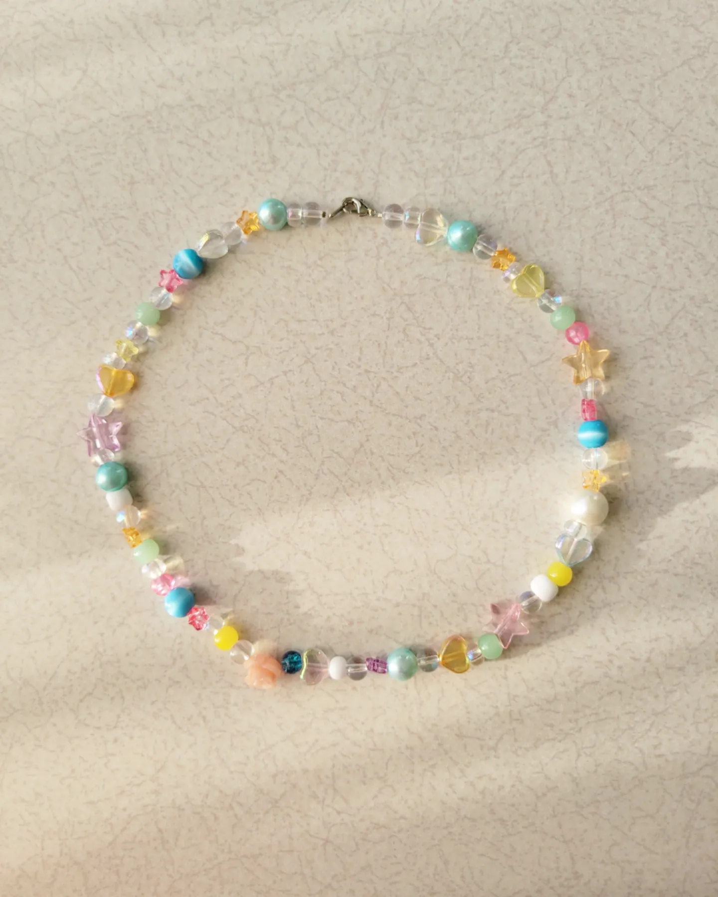 I took the day off work on wednesday as a mental health day, and gave myself the rule that I couldn’t work on any projects that are on my to-do list. I ended up making this colorful necklace because I keep seeing really cute ones all over instagram. ♡