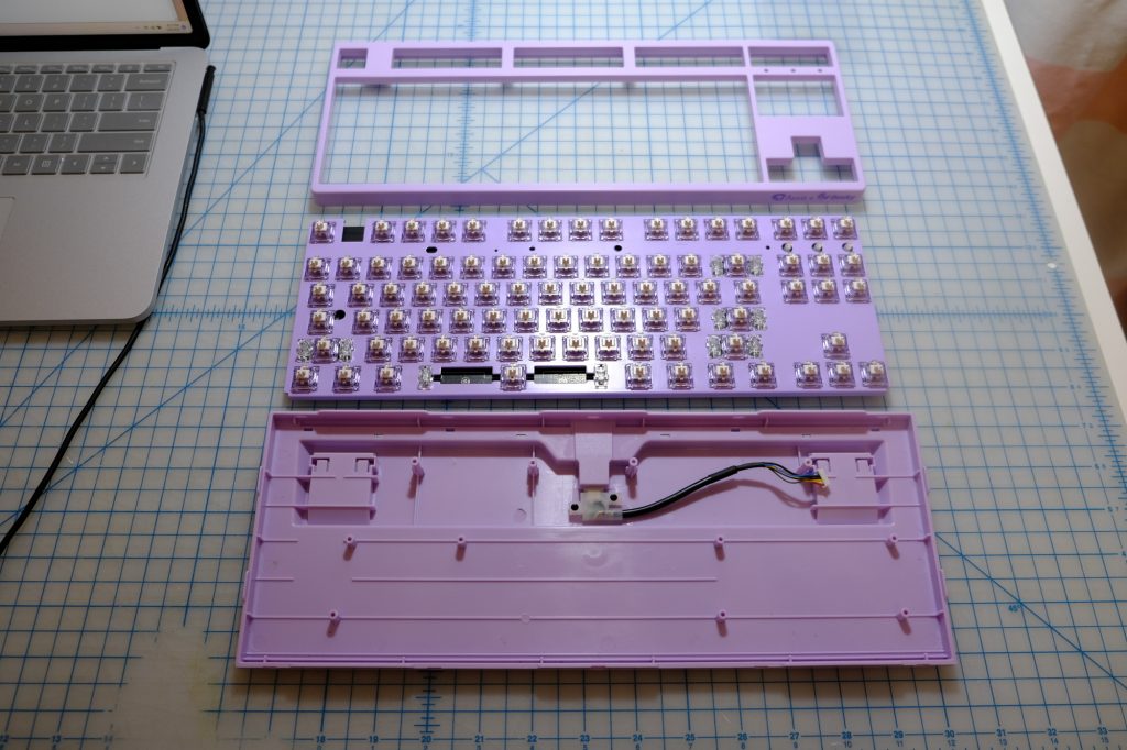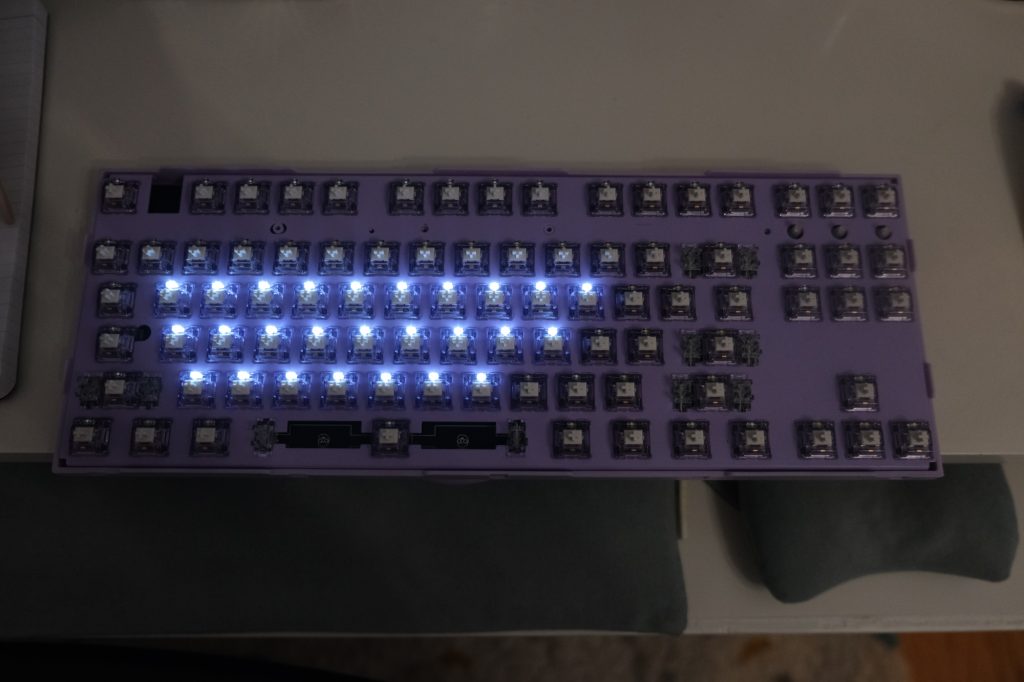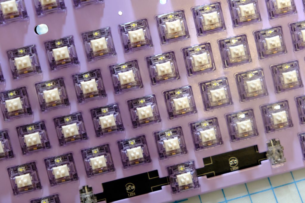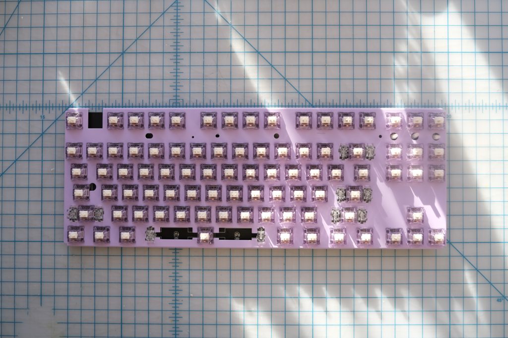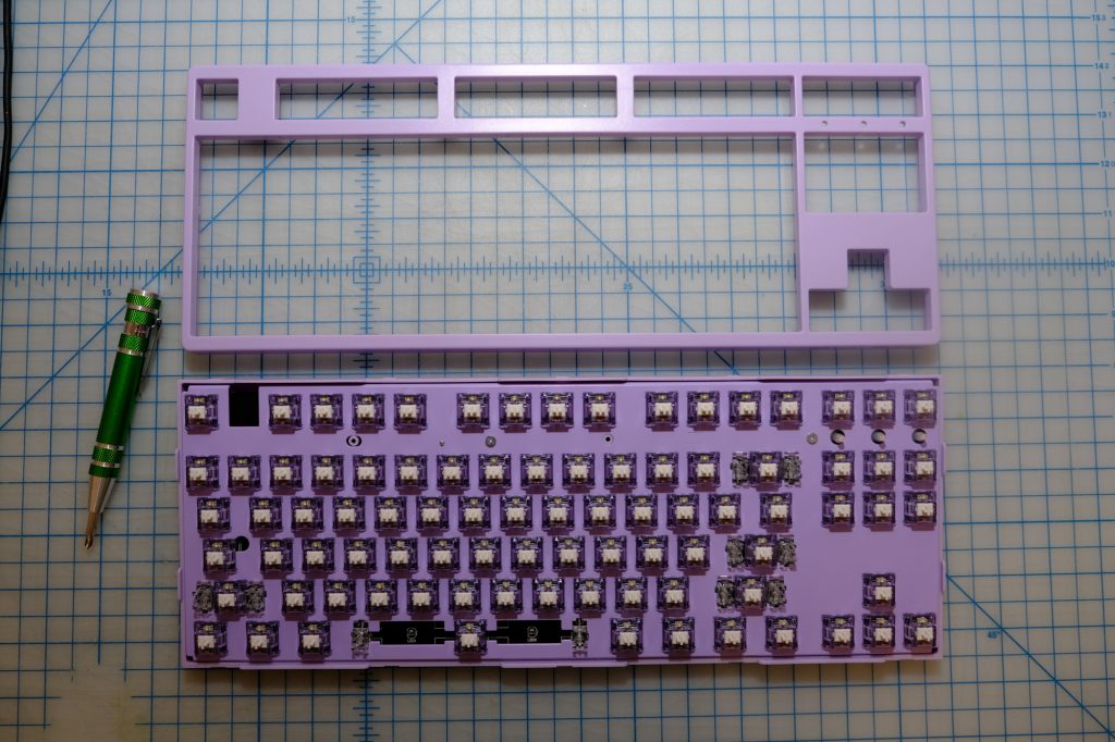 My biggest mistake was that I got so excited about successfully unsoldering all of the red switches, I immediately began soldering in the lavender switches – without putting the stabilizers in first. This meant that I had to unsolder all of those new switches so that I could remove the metal plate, to then attach the stabilizers. 🥲
