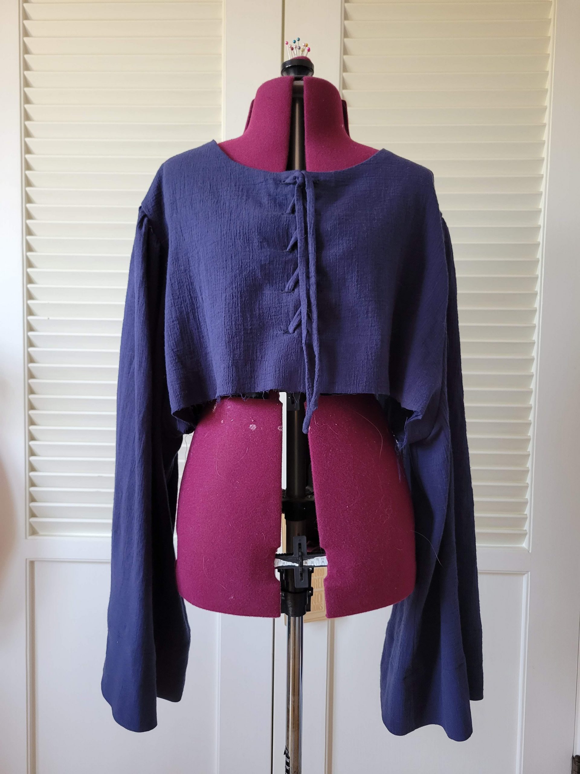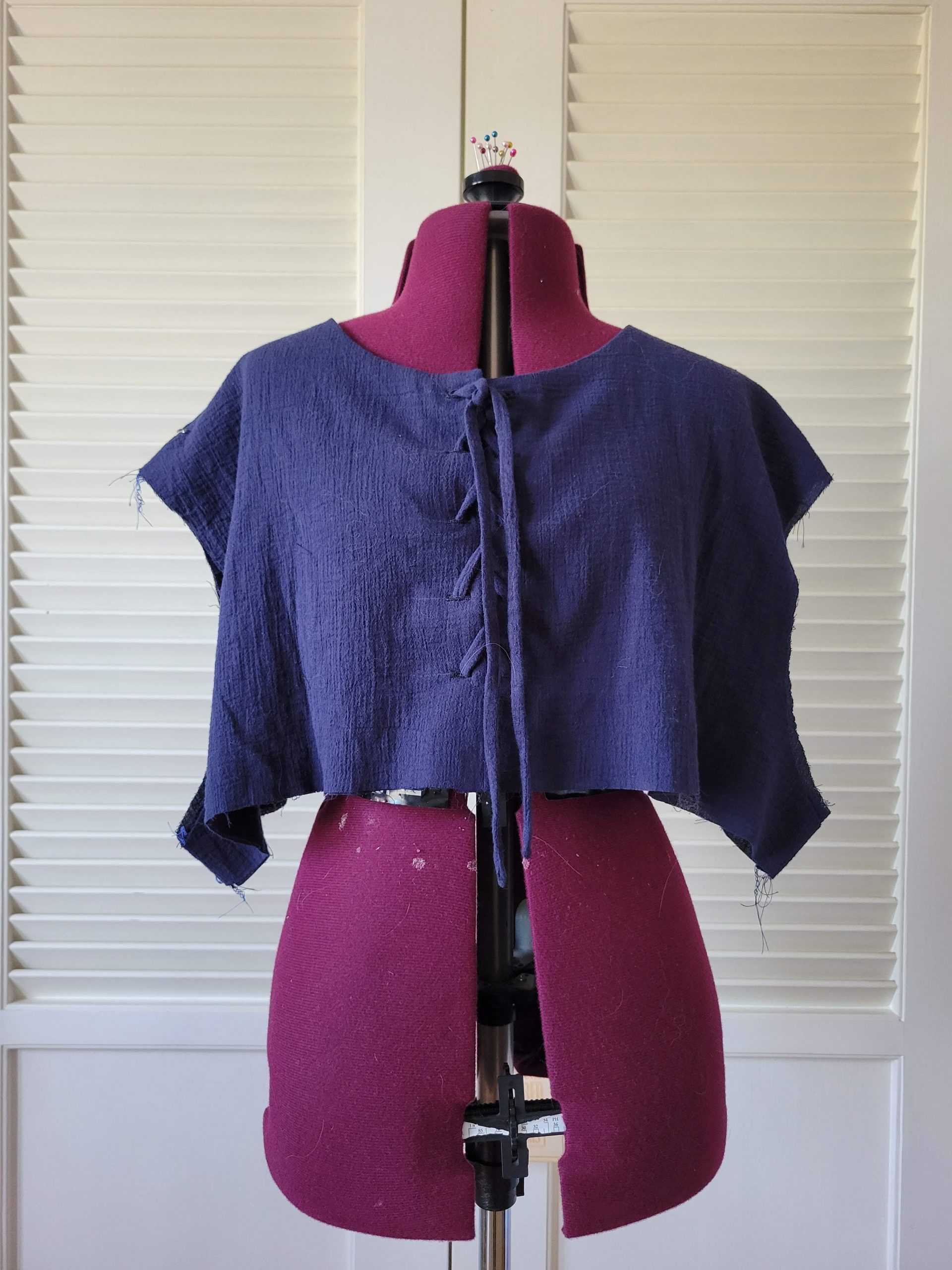 • I mainly only used the top portion of the pattern (cut straight instead of on an upward angle like the pattern photo) to create an open front for the robe, which I lined using the main fabric. I used button holes for the lacing for the first time, and I really like the technique as an alternative to metal grommets!