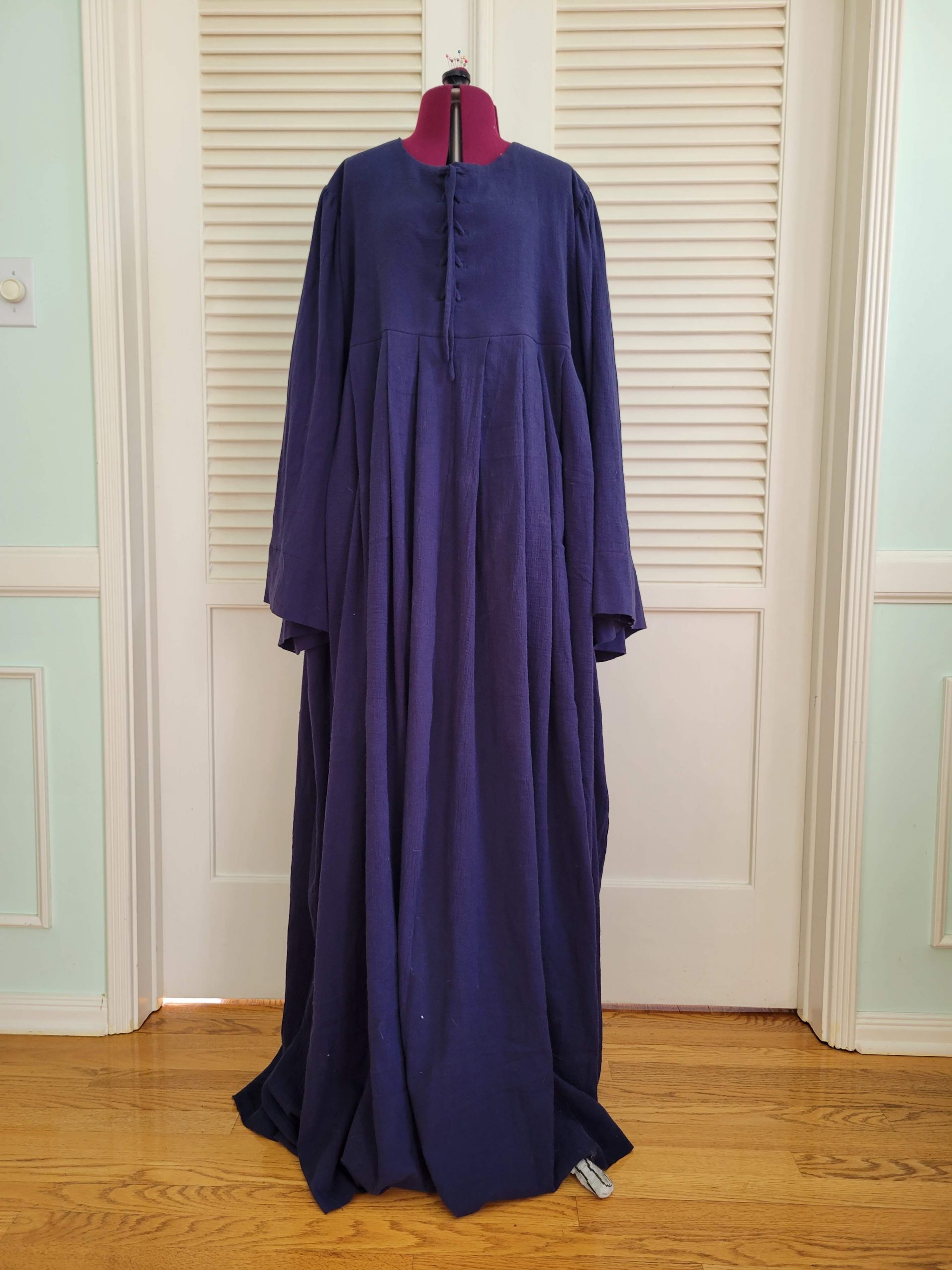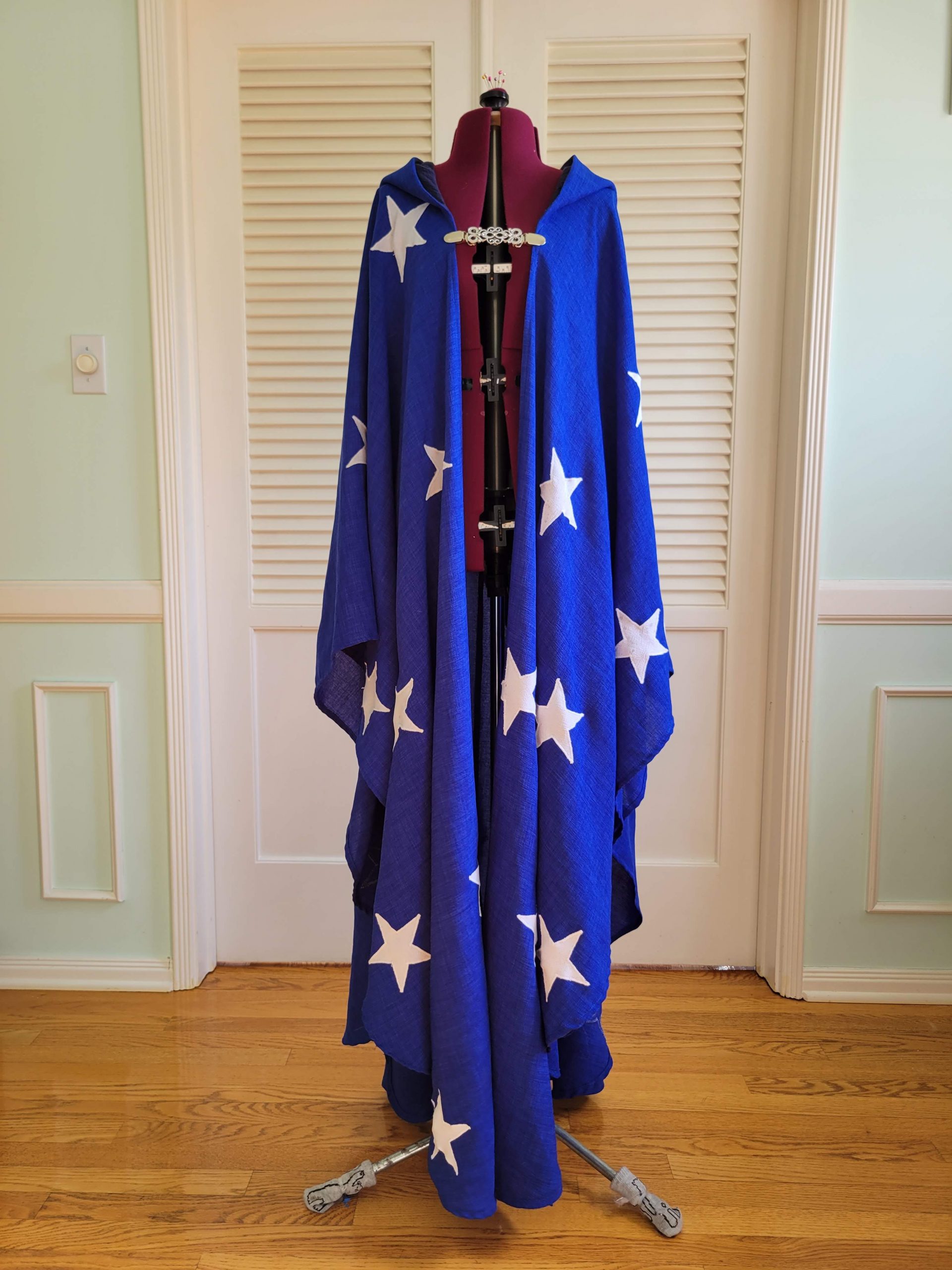 The fabric for the robe was the Island Breeze Gauze in Navy from fabric.com. I was able to finish he robe in one weekend! (I’d budgeted two weekends for the entire costume and was very happy about this haha)