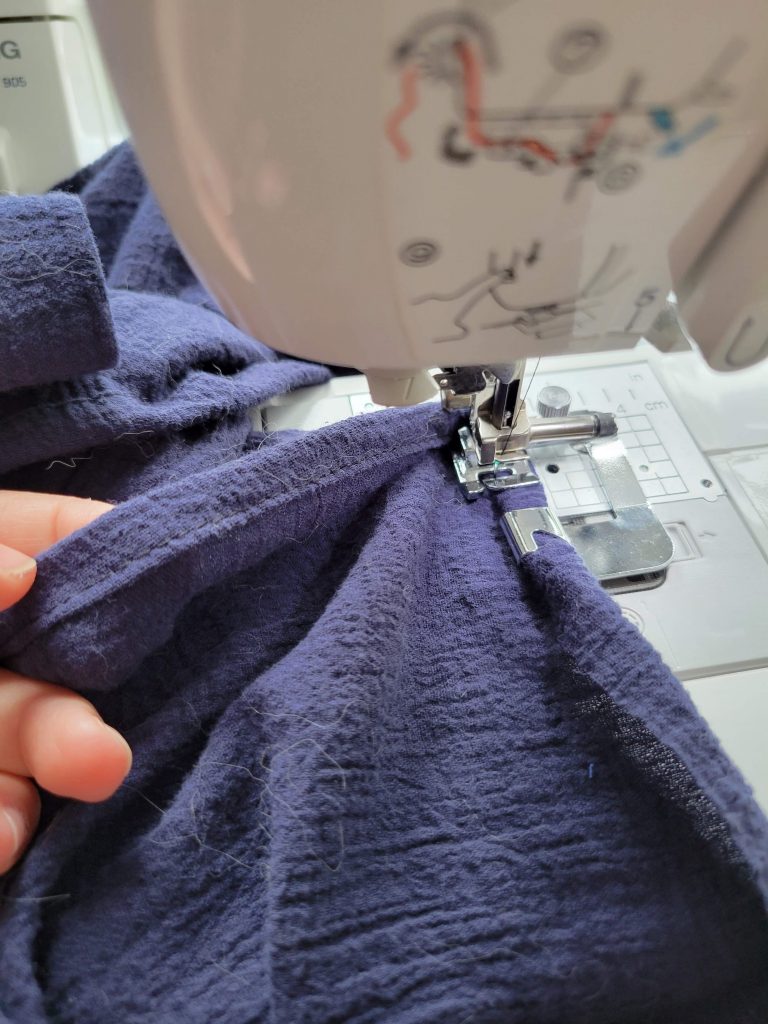 I can’t forget to add that I used one more new-to-me technique on the robe – a rolled hem foot on the machine! I’d recently learned about them by following @burieddiamond on instagram, and immediately ordered a set once I realized how much fabric I’d be using on this project. 😂