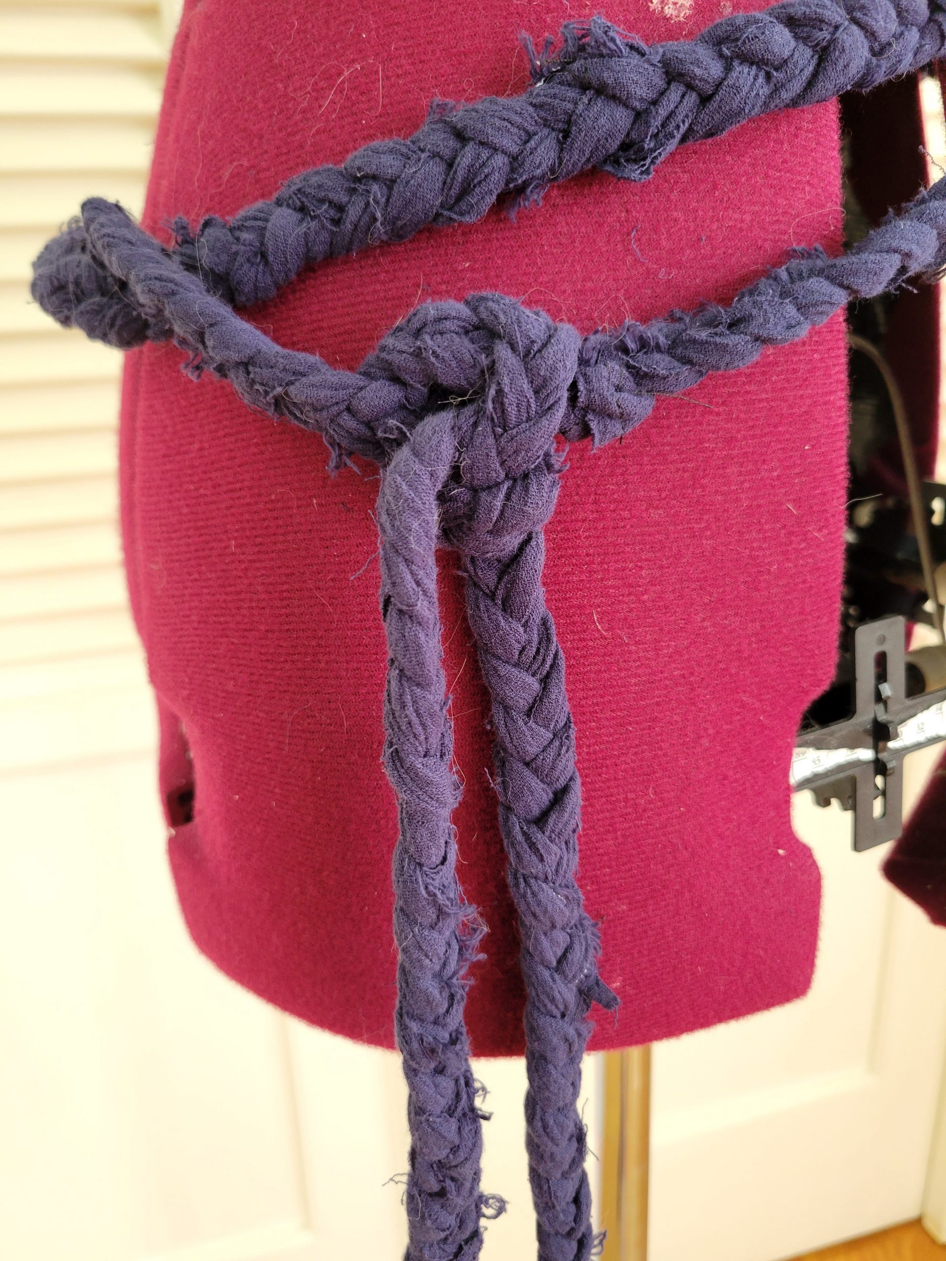 After the ren faire, I knew I no longer needed the scraps leftover from the costume so I used the robe gauze to make this braided belt. We saw them being sold at the fair and it seemed like a great way to not waste any fabric. 🙂