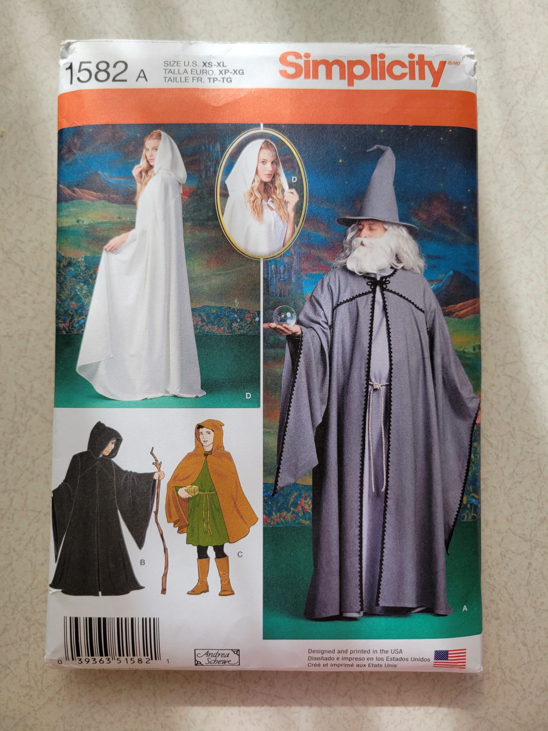 I used the sleeved cloak of Simplicity 1582 (View A) from my collection as the base of the robe. Some alterations I made: