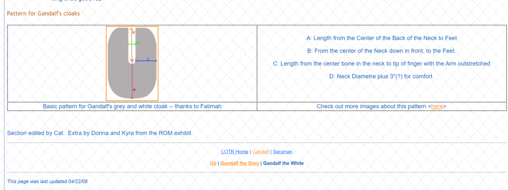 The main keywords I had to go off of were “classic,” “gritty,” and “shifty” and “lots of fabric.” We ended up using a combination of Gandalf the Grey and Gandalf the White as inspiration haha (I’m so glad that the Alley Cat Scratch website is still live after all of these years ♡). Images below are from both Alley Cat Scratch and Arwen-Undomiel.com.