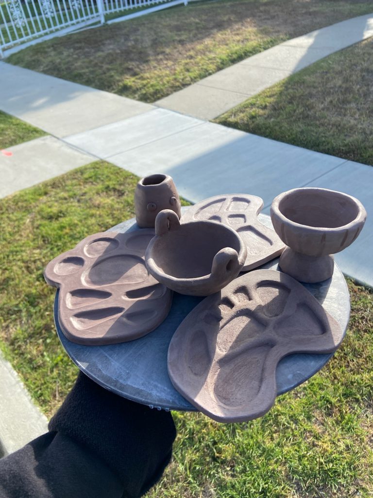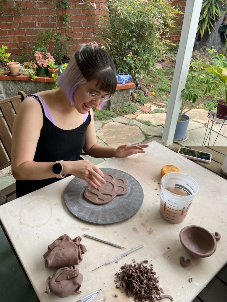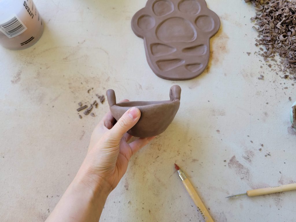 Last weekend my friend Sarah (of Waldo Pottery) invited me over to play with clay. 🙂 The main event was creating a palette out of a slab, but she also ended up showing me how to make a pinch pot and coil pot as well. I found it so soothing to work with clay and chat! ♡