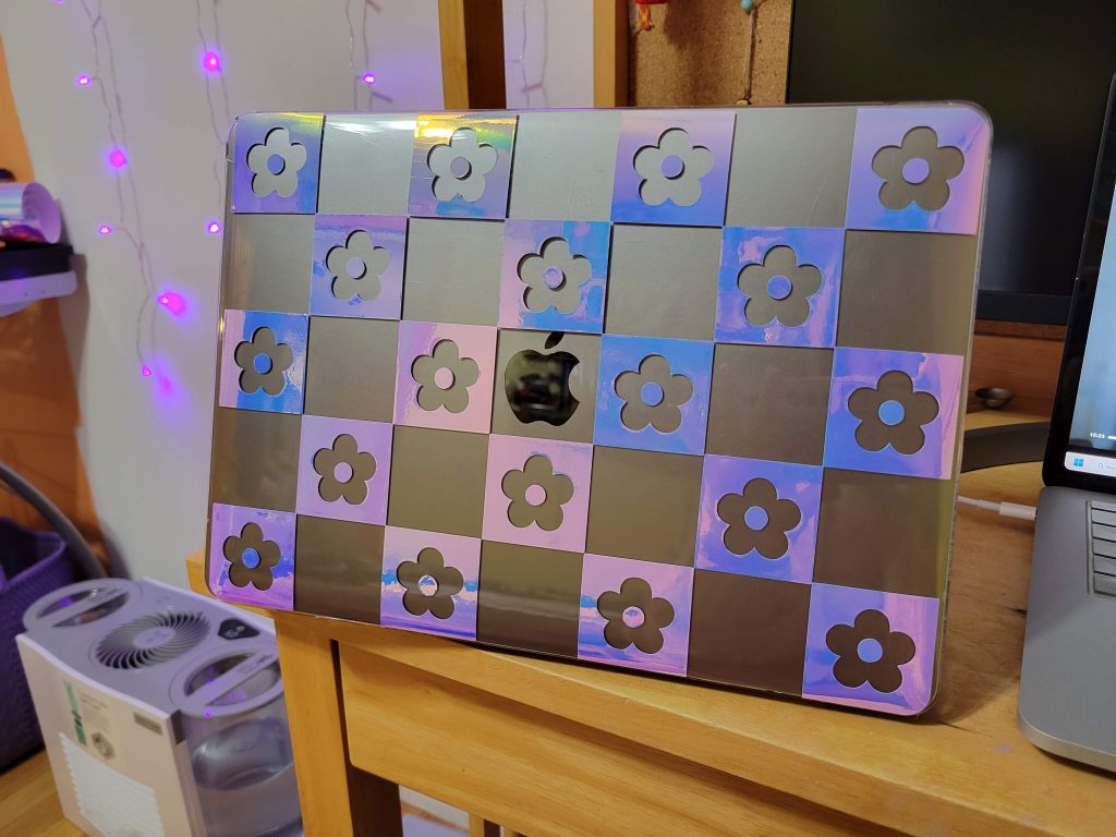 Borrowed my mom’s little cricut machine last night to experiment~ Decided to decorate my work laptop with some removable decals 🌸