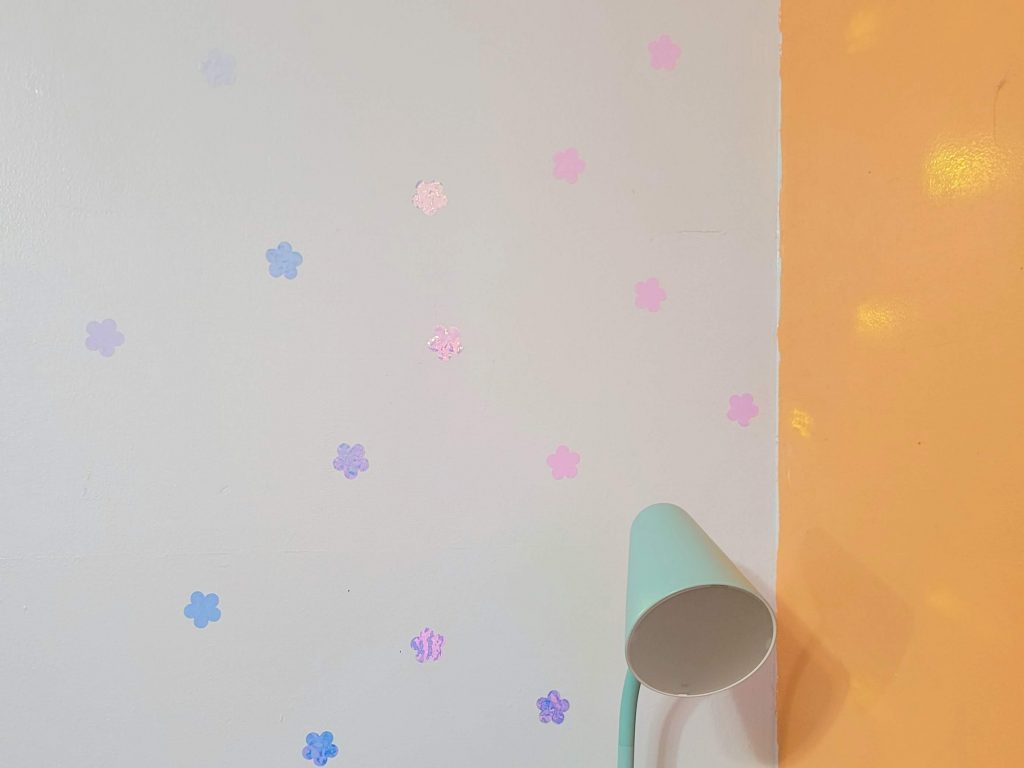 I put the leftover flower cutouts on the walls of my childhood bedroom – I like how they cast tiny reflections haha ♡