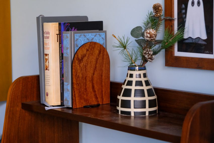 These bookends are the first “finished” thing I’ve created with our new Glowforge. I started out with the Harry Potter book nook, but quickly realized that it was going to be a super long-term project, considering how detailed it is and how bad. I was craving an easy, quick project that I could look at…