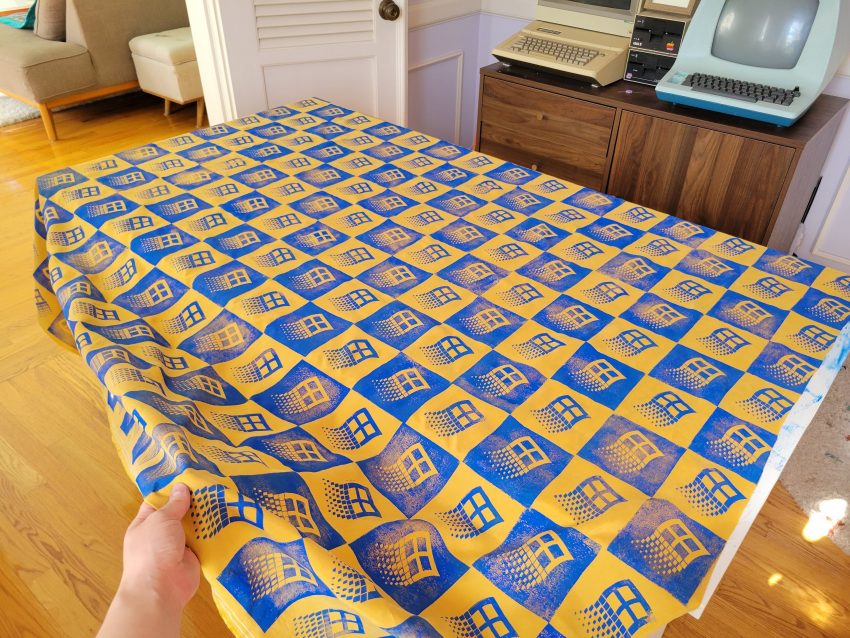 A combination of a few things inspired me to try block printing fabric for the first time this weekend: This Celeste bath towel by KJP that I picked up at Prelude & Dawn Discovering @meg_____makes and her amazing hand-painted and printed textiles on instagram A neon pink Jacquard textile paint I found at Crush &…