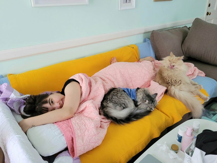 Hi! I’ve spent a lot of july as a fancy heated cat bed. First, it was because Mike and I were isolating as a planned precaution after he got back from a work trip (he pretty much stayed in the bedroom for a week). Then despite our best efforts, masking in the apartment, blasting air…