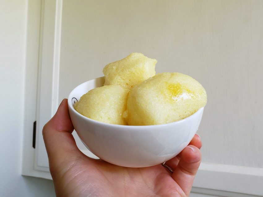 My first experiment in the world of jelly! I don’t know if I got over-ambitious with the whipping, but it’s possible I mixed this until it was more than the recommended double-volume.. I say that because this ended up *almost* as light as the bubbles you get from pouring soda too quickly haha (video demonstrating…