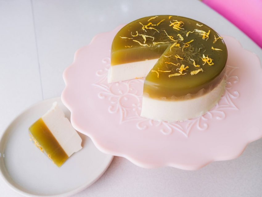 My first jelly cake! I’ve been lusting after the cakes by NÜNCHI on instagram, and decided to give it a try myself. The top layer is chrysanthemum tea jelly (tea from Chado Tea), bottom is almond jelly, and it’s topped with dried marigold petals from Old Town Spice Shop. ♡ I used wayyyyyyy too much…