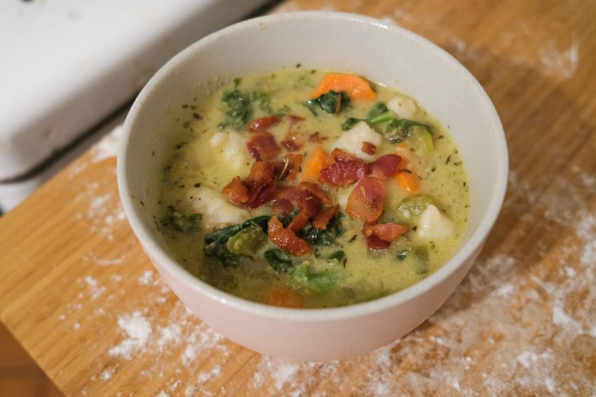 I found this recipe through @xomissdanielle on instagram, and thought it’d be the perfect cozy dish to try over the holiday break. The only snag was that when we ordered the ingredients for it with instacart, they were out of stock of gnocchi. Luckily though, they were out of single potatoes (for a different meal)…